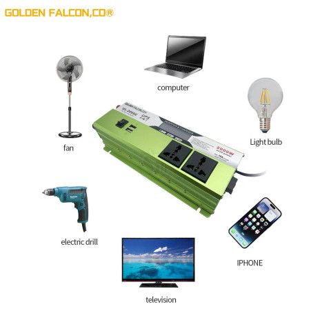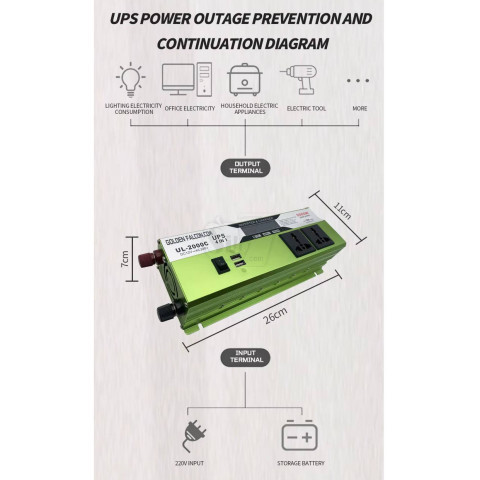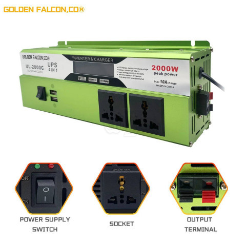 Golden Falcon Co UL-2000C 2000W UPS Inverter with Battery Charger 12v to 220v Solar Inverter with 2 Plug and 2 USB Port