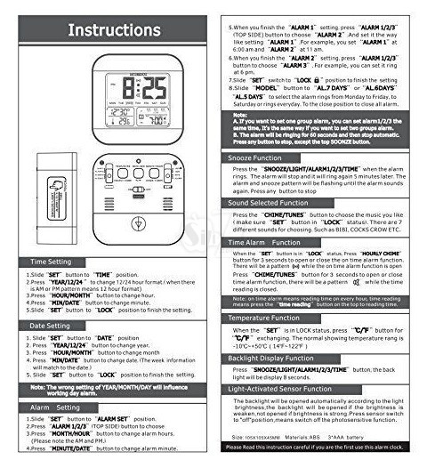7 ALARM SOUNDS WITH REPEATING SNOOZE- You can choose the alarm sound to wake you up,it includes bibi and other music