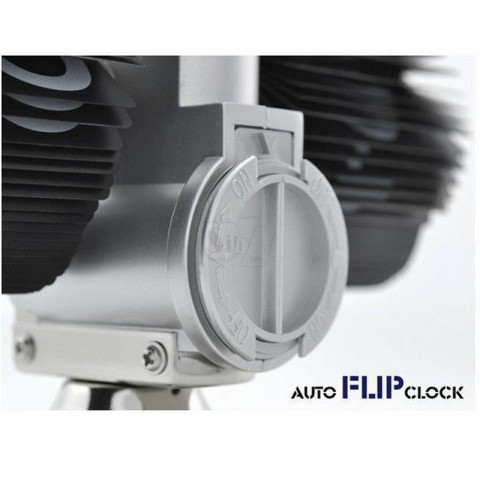 The Flip Clock is just like any regular old fashioned flip click which has small plates that rotate against a bent metal finger and when the clock rotates to a certain point the next plate drops down to reveal the next minute or hour.