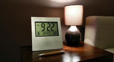 It has a large and bright screen with the ability to display the temperature and the weekly and monthly Gregorian calendar