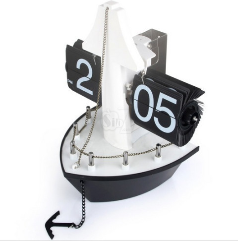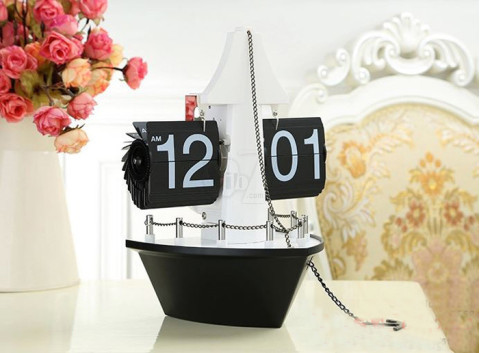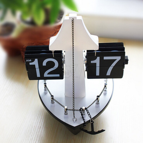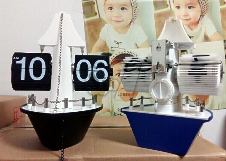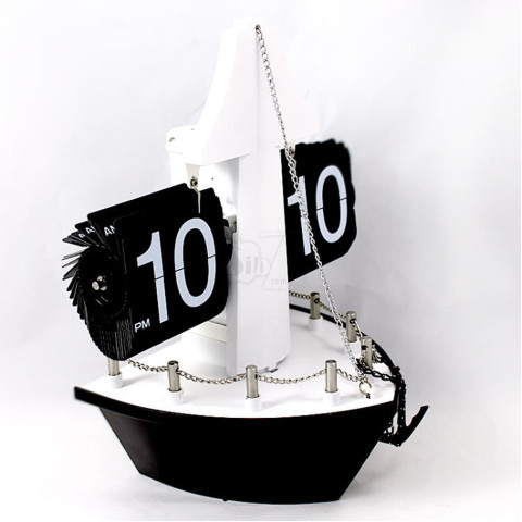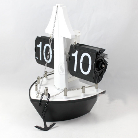 Desktop and Wall Sail Boat Ship Style 2 side Retro Page Gear Flip Clock with hour, Minute
