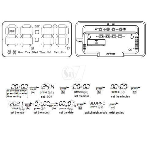 DST Setting: Press and hold the " " button in the time setting mode to turn on/off the Daylight Saving Time (DST) function. If DST is enabled, it will be displayed on the screen, otherwise, it will not be displayed.