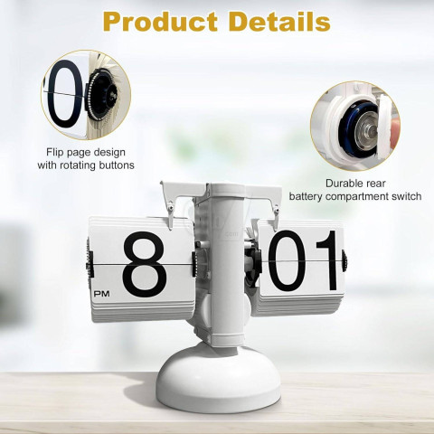 SYTC010 WW Retro Modern Metal Scale Digital Auto Flip Single Stand Metal Desk Table Clock + Auto Flip Clock