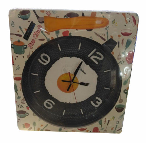 Novelty Design : Unique wall clock in the shape of a frying pan with a cooking egg in the center, has a fork and a knife for the hands.