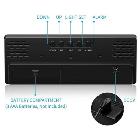 LED Digital Alarm Clocks 3 Levels Desktop Alarm Clock Brightness Setting Time/temperature/date Display Table Clock