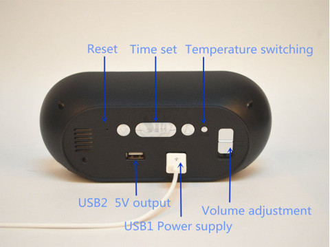 There are two USB charging ports on the back panel, one for clock power and the other for