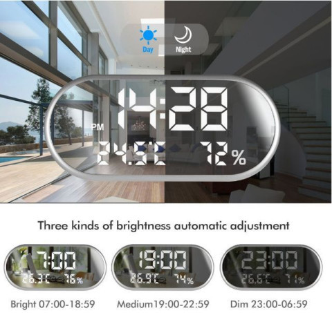 Self-adjustable illumination: Brighter, medium brightness, Darker, so, Do not worry about the brightness of the alarm clock that affects our sleep quality. 2 levels of adjustable volume.