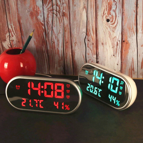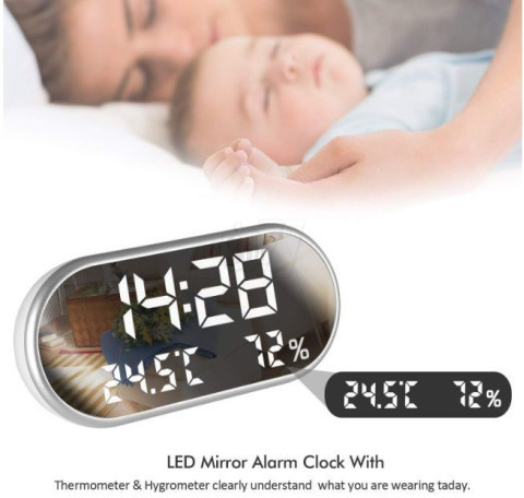 LED High Definition Mirror Alarm Clock Temp Humidity Sensor
