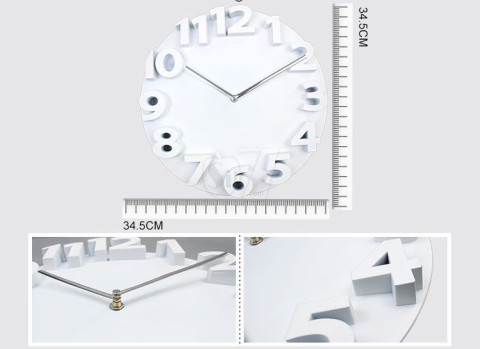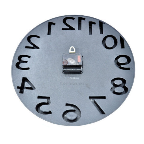 is a simple and novelty round shaped quartz wall clock, which adopts unique hollow out 3D big digits as the time scale, and is powered by one AA battery to provide you precise movement and keep good time.