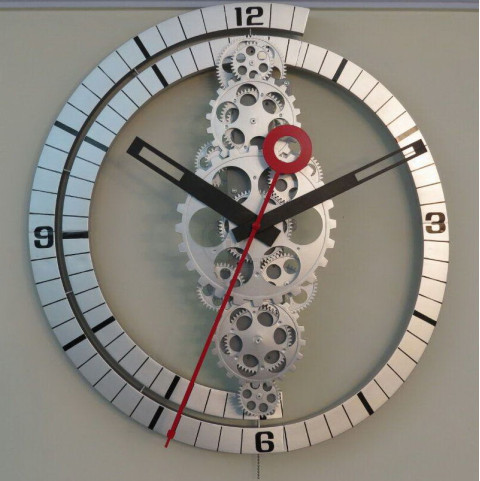 Maple's Large Wall clock mechanical gear modern decoration Silver