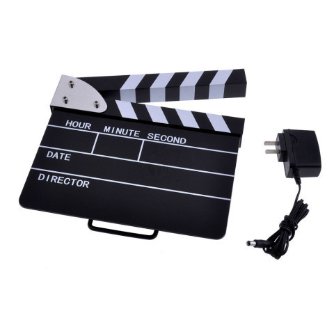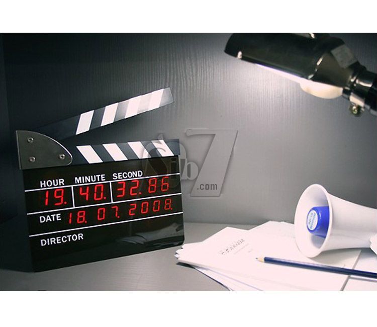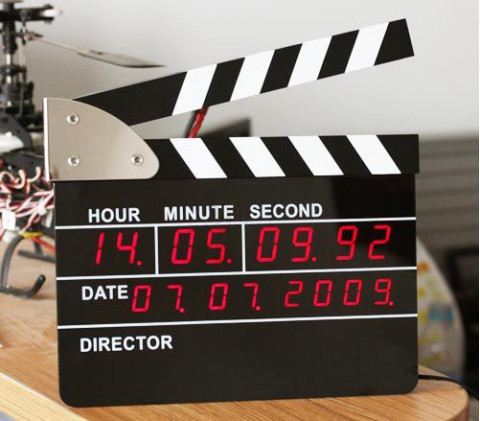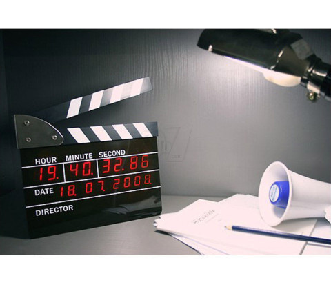 Movie Slate Clapper Board LED Digital Desk Clock with Calendar, Alarm, Powered by AC/DC Adaptor -