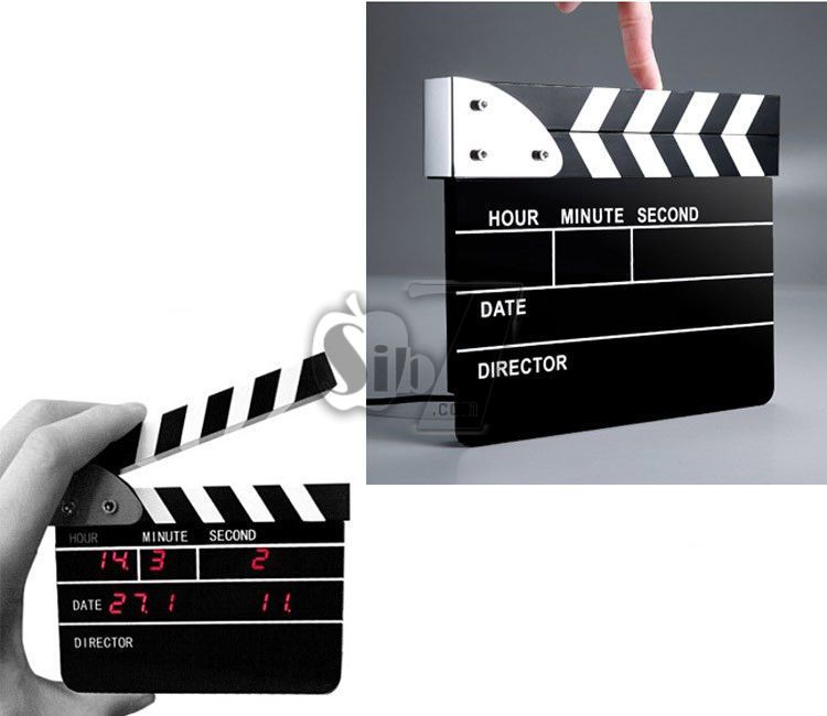 Looking and acting exactly like a director digital clapperboard, this Digital Alarm Clock displays time in a 24 hour format, which is complete even up to seconds and deci-seconds.