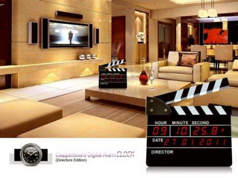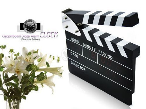 For all you aspiring directors, movie freaks, and people just interested in funky looking clocks, Geek Alerts This clock has shaped clapper director.