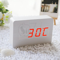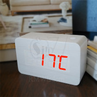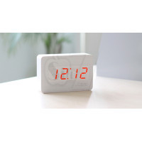 W2 Wooden LED Alarm Clock and Thermometer with Bluetooth Speaker and Qi Wireless Charger