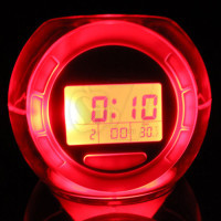PN-1075 Transparent Digital Alarm Clock with Natural Sound Music, 7 Color Changing LED Light, Thermometer and Calendar