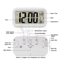 021 New Light Sensor Digital Alarm LCD Clock with Calendar and Thermometer