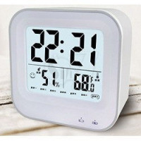 054 Rechargeable Clock with Night Activated Smart Sensor, Temperature, Humidity, Week Display, Snooze