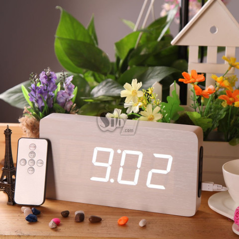SLT-6016A Wood Style Digital LED Wall Desktop Clock with Remote Control