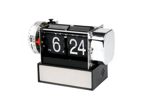 The retro flip-down clock is entirely crafted from solid metal, and the clock combines precision electronics with design great ingenuity.