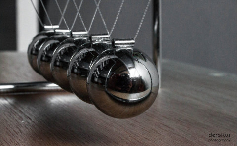 Pull up one ball and release,only one ball in the other side moves,pull up two,two balls will react, and so on.