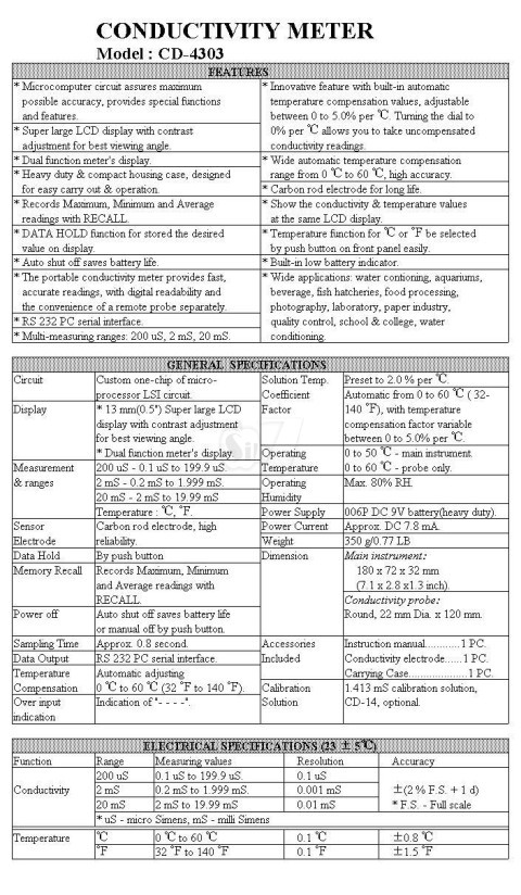 Main instrument: 180 x 72 x 32 mm (7.1 x 2.8 x1.3 inch).