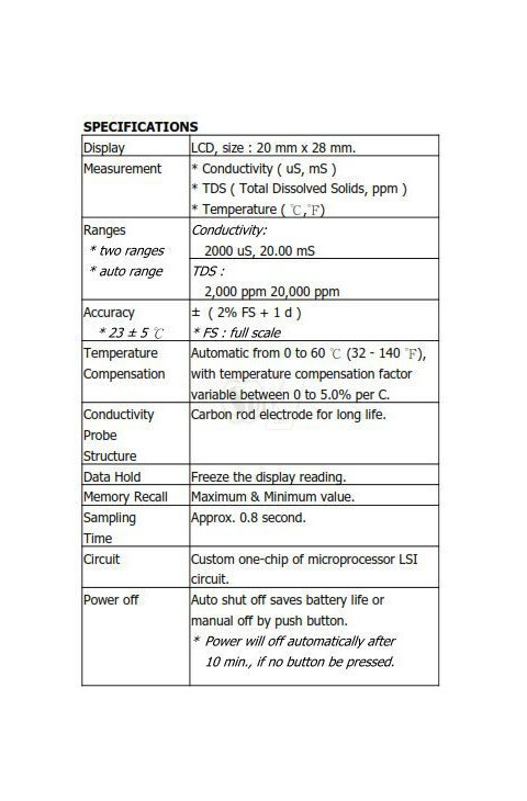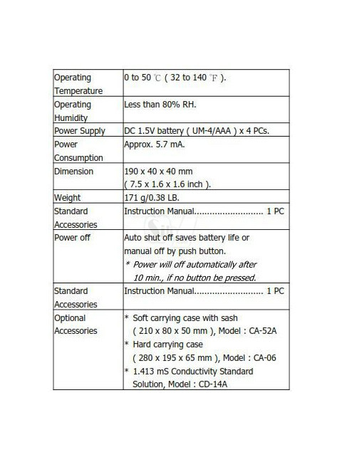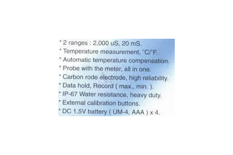 Lutron PCD-431 is pen type conductivity, TDS and temperature meter.  Features: 2 ranges: 2,000uS, 20mS Measuring range TDS: 20.000ppm...