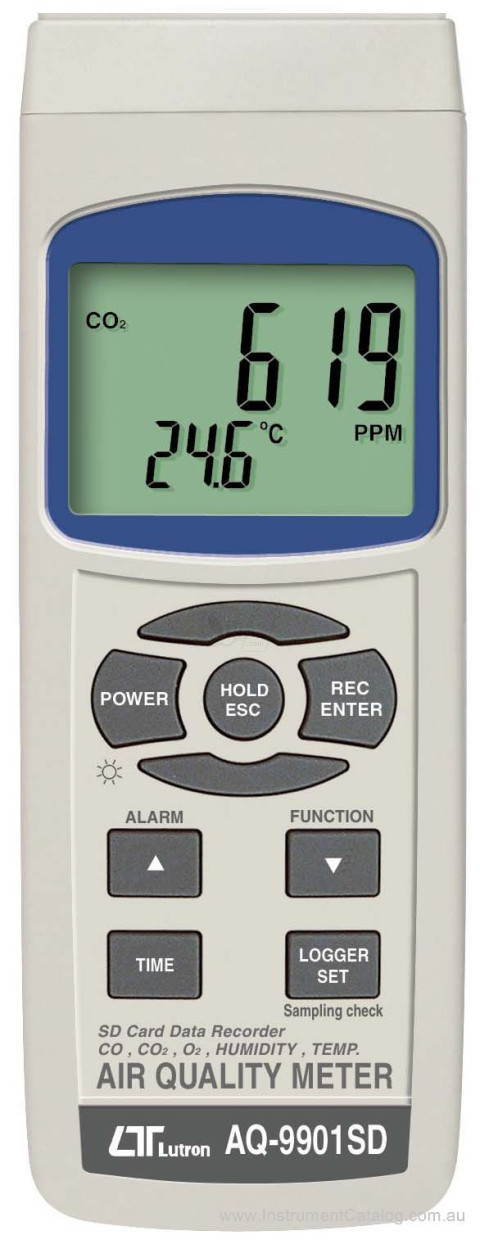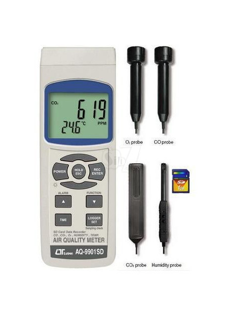 Air quality is important for productivity, safety and achieving optimum settings on ventilation and fresh air entry in HVAC control systems. The Lutron LU-AQ9901SD is an economical solution for determining base conditions and the effects of changes in control settings. Accuracy is sufficient for this purpose and the kit is supplied with sensors and carry case - just add an SD card up to 16Gb capacity. Data is transferred to a PC on the SD card and can be analyzed directly using a standard spread sheet program. The air quality meter is one of the new family of environmental instruments using SD card logging including LUX, sound level, heat stress index, 3 phase power and atmospheric pressure.