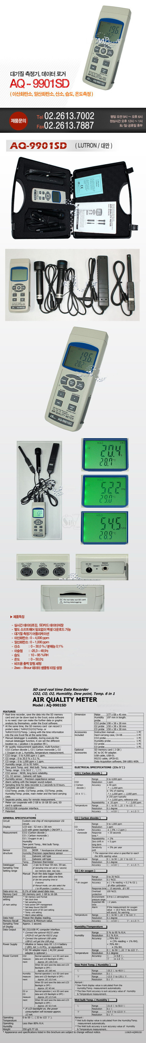 * CO range : 0 to 1, 000 ppm x 1 ppm. Data Acquisition software, SW-U801-WIN.