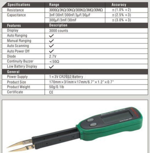 Mastech MS- 8910 SMART SMD TESTER DIGITAL SMT COMPONENTS RC Meter – Convenient One hand operated Tweezers