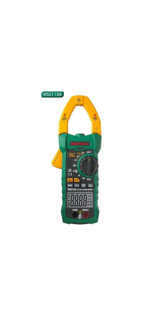 MASTECH MS-2115A DIGITAL AC/DC CLAMP METER WITH TRMS/NCV Features: 1. LCD with 5999 counts 2. Jaw size up to 40mm/1.6 inch 3. DC/AC current...