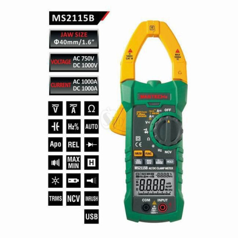 MASTECH MS2115B 6000 Counts Digital AC/DC Clamp Meter with NCV True RMS & USB Features: Jaw Size up to Φ40mm/1.6” Large 6000 Counts LCD...