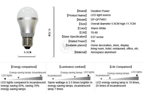 DP-QP5W01 E27 5W 320lm 6500K LED Light Bulb - Blanc (AC 90 ~ 240V)   Product Description  1. High luminous efficiency: Up to 560Lm/W for whole...