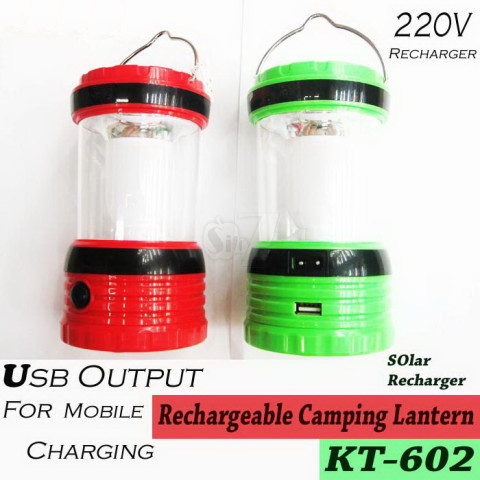 6 LED KT-602 Rechargeable Solar Camping Lantern light with USB output charger