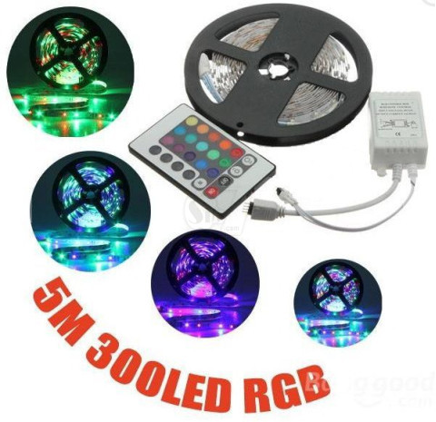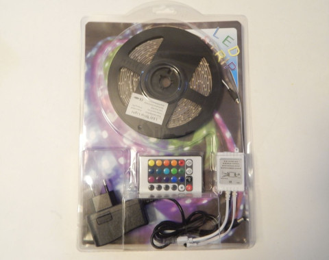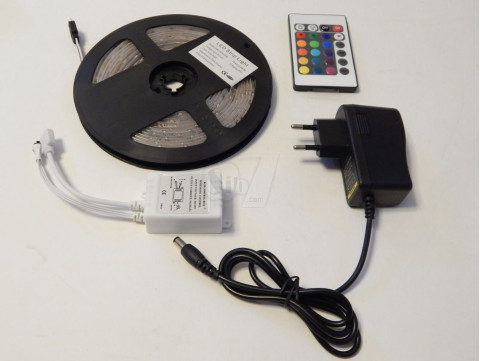 SMD3528 60LEDs/m 5 meter Full Pack RGB LED Strip with remote control All Kits are ready to use. RGB LED strips, remote controller, power adaptor and...