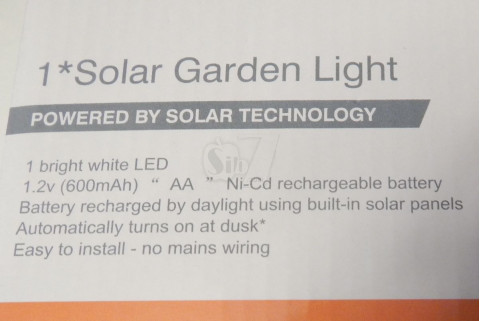 Illumination time of the Garden Night Light up to 10 hours after fully charged.