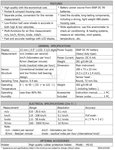 Digital Anemometer LUTRON AM 4200