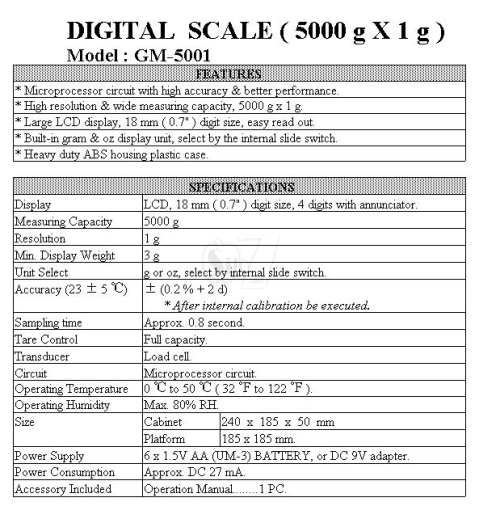 1. 5000 g x 1 g, 176.00 oz X 0.05 oz.