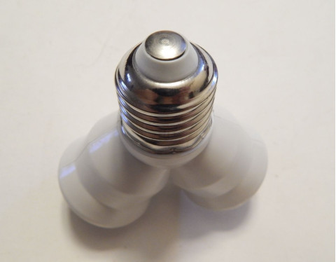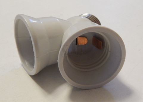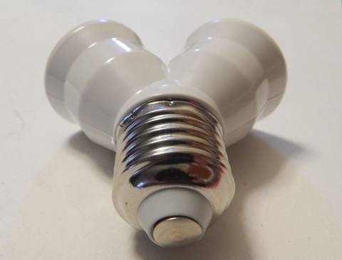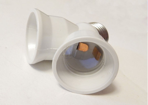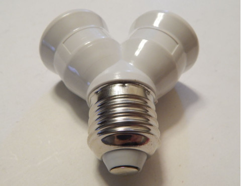 2xE27(female socket) to 1xE27(male plug) adapter.
