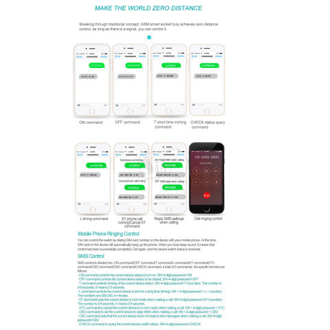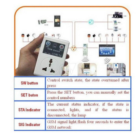 Wireless socket can work anywhere with GSM signal, and can set 5 groups of main numbers, so you can use it with confidence.