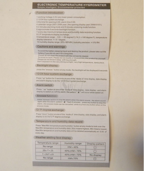 This SiB7 practical alarm clock includes a thermometer and hygrometer to provide you with real time temperature and humidity information when you wake up. The easy to read LCD screen provides you with the ambient temperature in Celsius or Fahrenheit and Humidity information as %RH, in addition to time and day information.