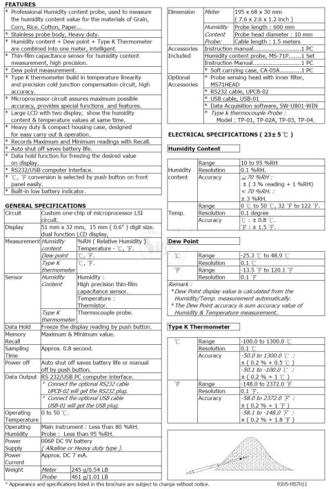 * Complete set, meter + humidity probe (MS-71P).