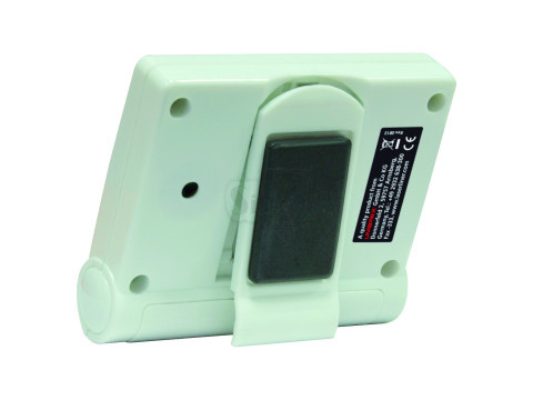 Can be used as tabletop device with fold-out stand/clip or to attach to metallic surfaces by means of the integrated magnetic holder