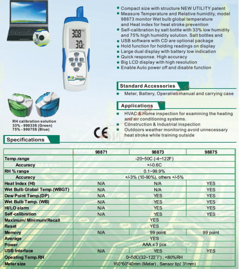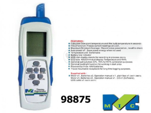 Portable Thermo-Hygrometer with Data Logger MIC 98875