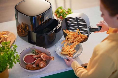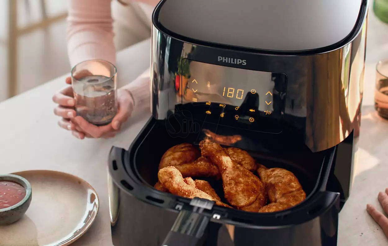 The Philips Airfryer uses hot air to cook your favorite foods to crispy perfection, with up to 90% less fat.