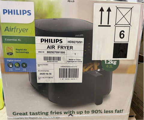 PHILIPS Air Fryer HD9270, uses up to 90% less fat, 2000W, 6.2 Liter, with Rapid Air Technology