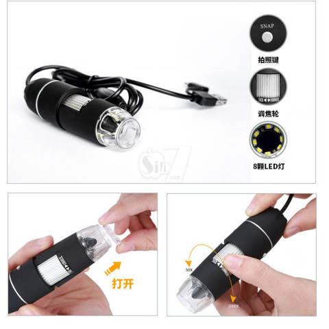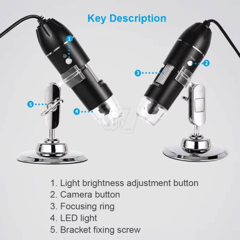 Built-in 8 LED lights, digital microscope’s 2 adjusting knob can change the focus and brightness.