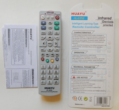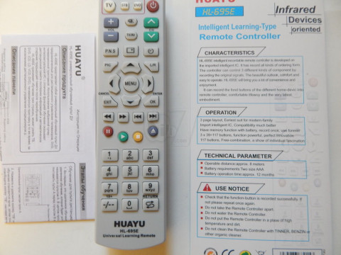 Using the remote HL-695E can operate your TV, DVD-player, VCR, receiver, audio system - almost any technique, controlled by infrared radiation, except for the air conditioner.