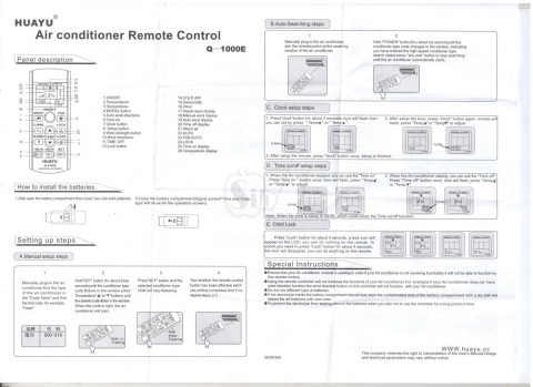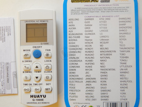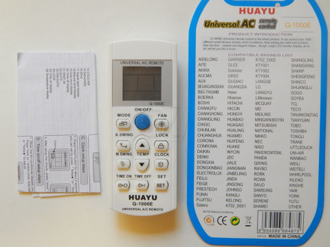 Universal AIR Conditioner remote controller HUAYU Q1000E   Description: Automatic, find the appropriate code for your Conditioner Manual...