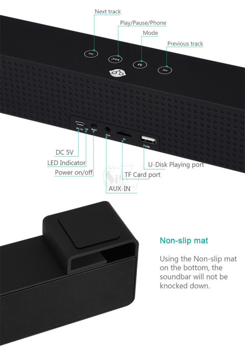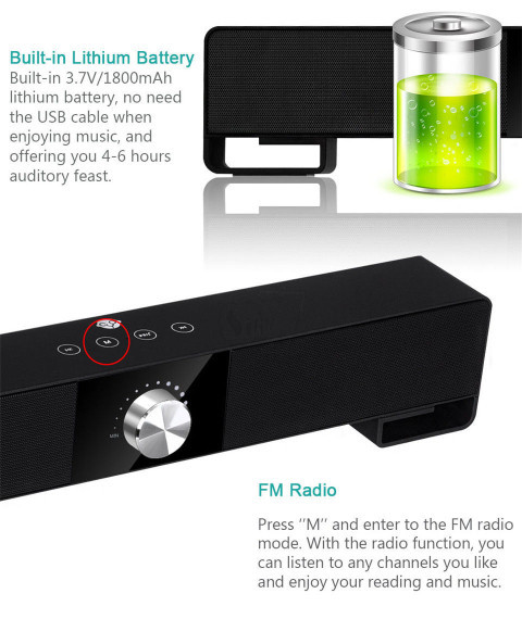This new wireless Bluetooth audio bar is compatible with your MP3 device, computer, laptop, small size LCD TV (with 3.5mm Aux port), mobile phone (iPhone 7/7 plus, iPad, iPod, Samsung S7 / S6, Kindle, Smartphone , Tablets), and portable audio player to maximize your audio experience and experience superior quality, car, dorm room and kitchen.