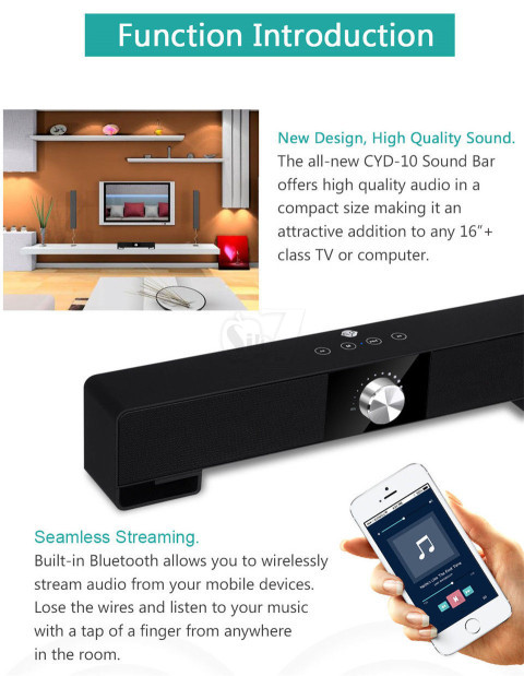 CYD-10 TV Subwoofer Bluetooth Sound bar Speaker Home Cinema Music Center If a higher quality and Bluetooth portable audio speaker is a nice pleasure and...